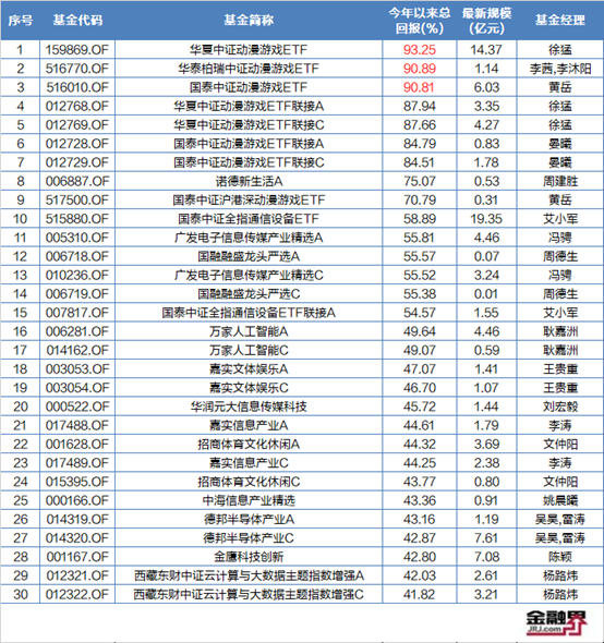 直接上基金年中排名TOP30榜单: