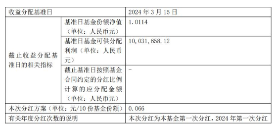 工银中证A50ETF基金经理赵栩表示,中长期来看,分红不仅可能为投资者锁定收益,也有助于引导投资者进行长期投资,是提升投资者获得感和满意度的一个重要方式。据公告,此次分红方案为每10份基金份额分配0.066元,收益分配基准日为3月15日,基准日基金份额净值为1.0114元,基准日基金可供分配利润为1003.1658万元。此外,中证A50ETF基金此次分红权益登记日为3月26日,现金红利发放日为4月1日。