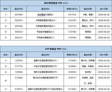 三、 上周(4.22-4.26)绩优基金一览