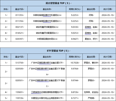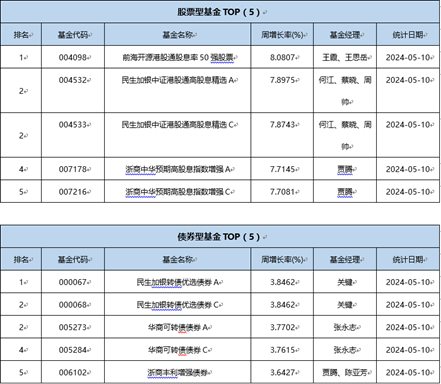 三、 上周(5.6-5.10)绩优基金一览