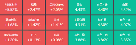 5月23日A股三大指数收跌,截至收盘,沪指跌1.33%,报3116.39点,深成指跌1.56%,报9541.64点,创业板指跌1.38%,报1852.07点。从板块行情上来看,今日表现较好的PEEK材料、船舶、芯粒Chiplet板块,表现不好的有黄金、有色锌、白银板块。