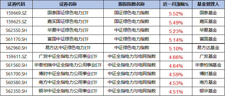 投资者也可以通过关注电力主题ETF来间接聚焦电力市场,目前十只电力主题ETF均表现出色,近一月涨幅均超4.5%。