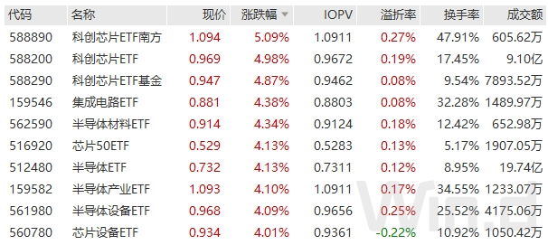 股票型ETF日涨幅TOP10:科创芯片ETF南方日涨幅居全市场首位