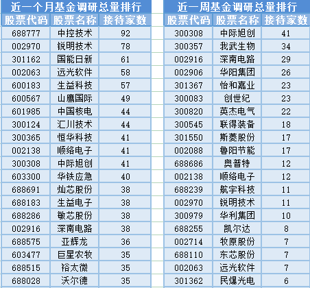 将时间周期缩短到最近一周(6月10日-6月17日)来看,基金调研数量第一的公司是中际旭创,属于通信设备行业, 公司主要经营范围是通信设备制造;光通信设备制造;光通信设备销售;电子元器件制造;电子元器件零售;光电子器件制造;光电子器件销售;集成电路芯片及产品制造;技术服务、技术开发、技术咨询、技术交流、技术转让、技术推广;货物进出口;以自有资金从事投资活动;企业管理;非居住房地产租赁,共被41家基金机构调研;然后被调研数量较多的股票是我武生物、深南电路和华阳集团,分别接受34家、29家和26家基金机构的调研。