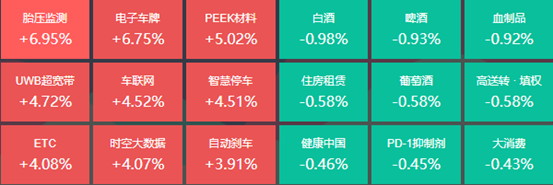 6月18日A股三大指数震荡收涨,截至收盘,沪指涨0.48%,报3030.25点,深成指涨0.4%,报9318.47点,创业板指涨0.29%,报1811.36点。从板块行情上来看,今日表现较好的胎压监测、电子车牌、PEEK材料板块,表现不好的有白酒、啤酒、血制品板块。
