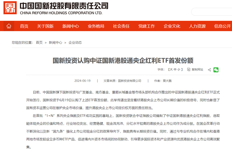 今日(6月19日),国新投资分别认购”南方中证国新港股通央企红利ETF、广发中证国新港股通央企红利ETF、景顺长城中证国新港股通央企红利ETF“的消息引发市场关注,该类ETF是“港股+央企+红利”三大热门概念叠加,3只ETF计划募集期限均为2024年6月11日至6月21日,认购天数为11天,其中仅广发中证国新港股通央企红利ETF设置了20亿元的募集规模上限。费率方面,三只ETF管理费率均为0.5%/年,托管费率均为0.1%/年。
