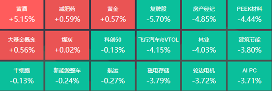 6月20日A股三大指数震荡收跌,截至收盘,沪指跌0.42%,报3005.44点,深成指跌1.63%,报9068.85点,创业板指跌1.44%,报1762.7点。从板块行情上来看,今日表现较好的黄酒、减肥药、黄金板块,表现不好的有复牌股、房产经纪、PEEK材料板块。