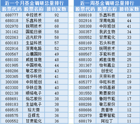 从个股调研情况上来看,最近1个月(5月20日-6月20日)最受公募基金关注的是中控技术,属于软件开发行业,主营业务为技术服务、技术开发、技术咨询、技术交流、技术转让、技术推广;工业自动控制系统装置制造;工业自动控制系统装置销售;仪器仪表制造;仪器仪表销售;智能仪器仪表制造;智能仪器仪表销售;软件开发;软件销售;网络与信息安全软件开发;信息安全设备制造;信息安全设备销售;信息系统集成服务,共有92家基金管理公司参与调研,其次是乐鑫科技和锐明技术,分别接受68家、68家基金管理公司的调研。