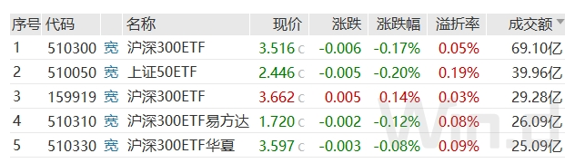 值得关注的是,多只沪深300ETF以及上证50ETF基金成交额大幅放大,其中华泰柏瑞沪深300ETF成交额为69.10亿元,华夏上证50ETF成交额为39.96亿元,嘉实沪深300ETF成交额为29.28亿元,易方达沪深300ETF成交额为26.09亿元,华夏沪深300ETF成交额为25.09亿元。
