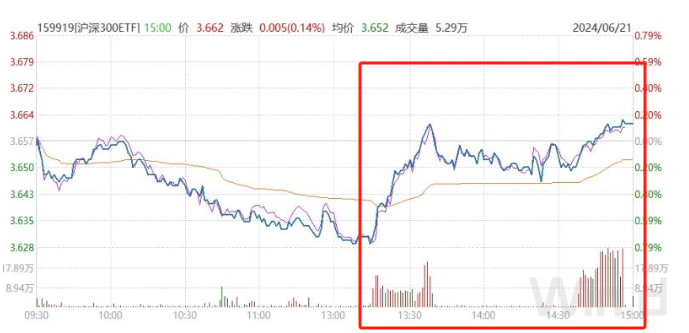 特别是从相关基金分时图来看,午后市场再度探底,13:15之后的半个小时,以及尾盘半小时,有明显的大资金买入,且买入时间高度一致。