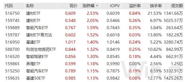 ETF方面,正常交易的上市ETF为963只,全天成交额1258.67亿元,较上一交易日增长8.11%。其中,936只非货币ETF成交1084.04亿元,较上一交易日增长11.17%。
