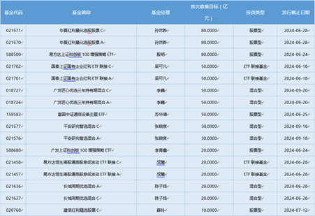 上周(6.17-6.21)新发基金共有36只,其中混合型基金6只,募集目标金额最大的基金是易方达上证科创板100增强策略ETF,目标为80亿元;基金分红347只,多为债券型,共有322只;派发红利最多的基金是国泰量化策略收益混合型证券投资基金,每10份基金份额派发红利2.1540元。