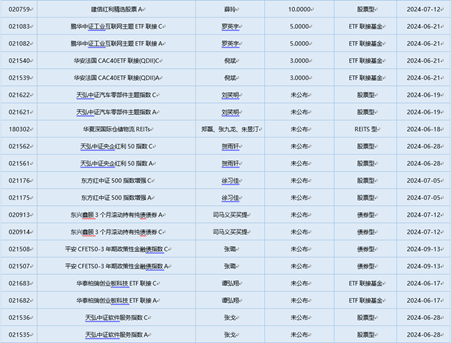 五、 上周(6.17-6.21)新发基金一览(不包含传统封闭式基金)