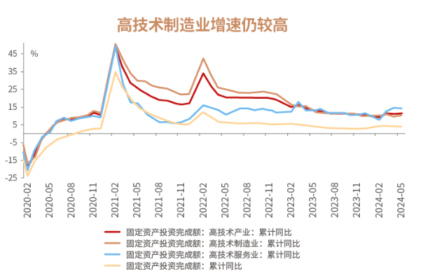 其一,在经济上,从5月公布的多项经济数据来看,虽然部分数据增速放缓,但实际上也不乏亮点,虽然投资、生产增速走低,但制造业,特别是高技术产业投资增长较快。回溯2022年2月至今的数据,从工业增加值的角度看,高端制造行业的业绩增速显著高于整体水平,体现了基本面具有较强的韧性。我们认为,在国内政策推动下,制造业或有望继续对国内投资形成支撑。
