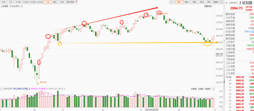 二季度以来的走势仍属于趋势向上扭转后的回踩,周线级别的下跌趋势没有延续(下图:2024.2-2024.6上证指数日线趋势)