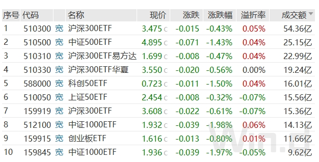 多只沪深300ETF、中证500ETF和上证50ETF基金成交额大幅放大,其中华泰柏瑞沪深300ETF成交额为54.36亿元,南方中证500ETF成交额为25.15亿元,易方达沪深300ETF成交额为22.99亿元,华夏沪深300ETF成交额为19.24亿元,华夏上证50ETF成交额为15.56亿元,嘉实沪深300ETF成交额为15.36亿元。此外,中证1000ETF成交额今日也出现明显放量。从成交金额来看,多只基金合计成交额超170亿元,从买入时机看,主要以托底为主。