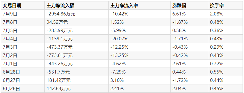 截止收盘,报7.26元/股,涨6.61%,总市值138.82亿元。Wind数据显示,截至7月9日收盘,三峡水利主力资金净流出2954.86万元,净流出额创2024年3月22日以来新高。日内净流出额在沪深两市中排名第83,占当日成交金额的10.42%,占流通市值的比例为0.21%,近5个交易日主力资金累计净流出4756.8万元,近30个交易日累计净流出9106.08万元。
