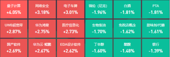 7月22日A股三大指数震荡收跌,截至收盘,沪指跌0.61%,报2964.22点,深成指跌0.38%,报8869.82点,创业板指跌0.09%,报1723.91点。从板块行情上来看,今日表现较好的量子计算、网络安全、电子车牌板块,表现不好的有锦纶(尼龙)、白酒、PTA板块。