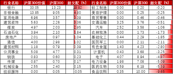 表:沪深300价值指数行业分布情况