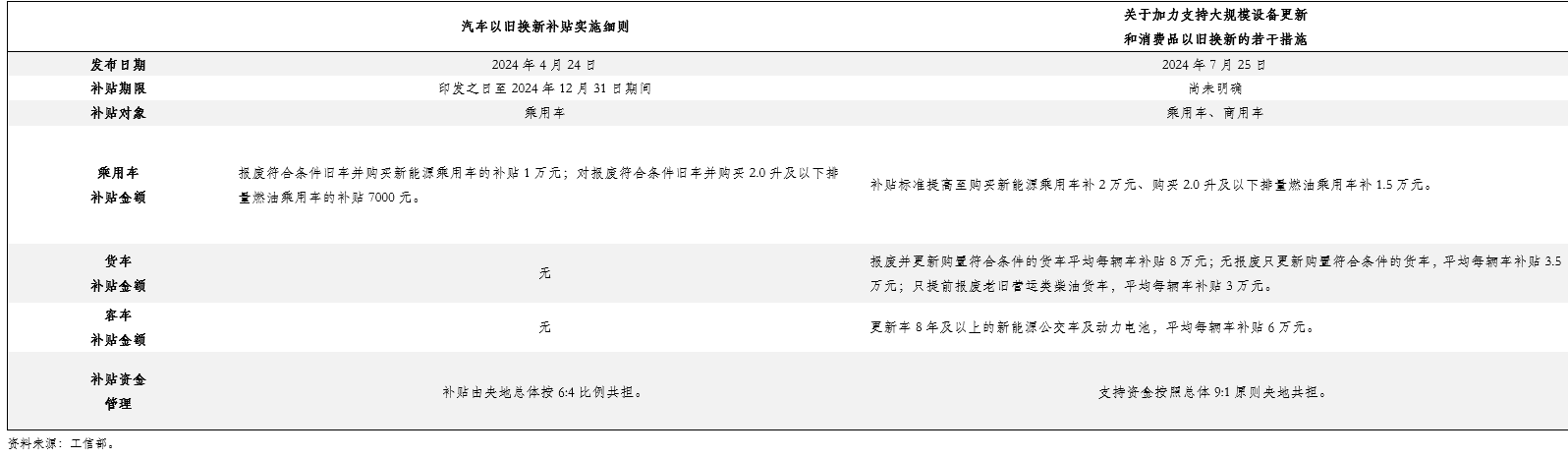 今年又出台了一系列新政策,整体来看,补贴范围较大、补贴力度较高。7月出台的《关于加力支持大规模设备更新和消费品以旧换新的若干措施》明确1500亿元左右用于支持地方新能源车、家电等消费品以旧换新等方向。