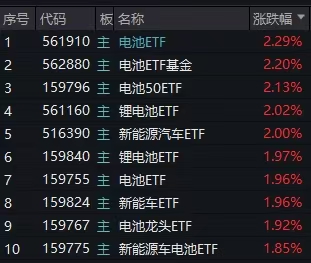 南都电源20CM涨停三连板!瑞泰新材、当升科技紧随其后,电池ETF(561910)涨超2.2%领涨两市权益ETF!