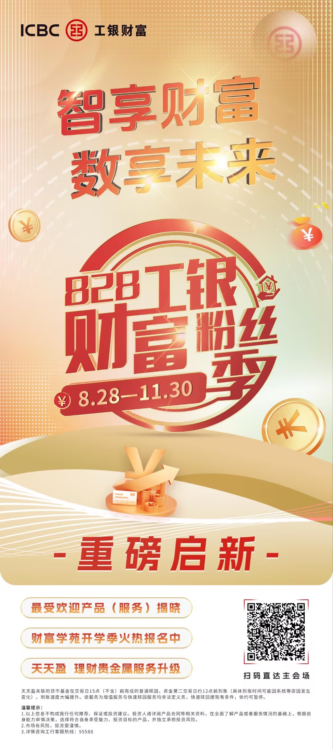 2024年8月28日至11月30日,中国工商银行开启“828工银财富粉丝季”活动,通过创新线上服务,丰富产品供给,提升金融服务的普惠性,为广大客户带来更加丰富和个性化的财富管理体验。