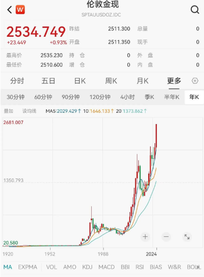 在一连串疲软的美国经济数据公布后,美联储降息预期升温,黄金再次创下历史新高。伦敦金价目前上涨近1%至2534.75/盎司。