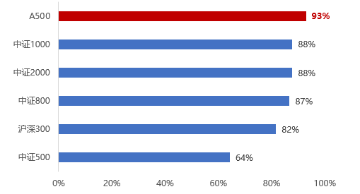 图:中证A500、沪深300、中证500自由流通市值覆盖度对比