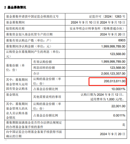 与此同时,嘉实基金认购份额超2亿份,占基金总份额比例为10%。嘉实基金员工认购总份额为2.2万份。