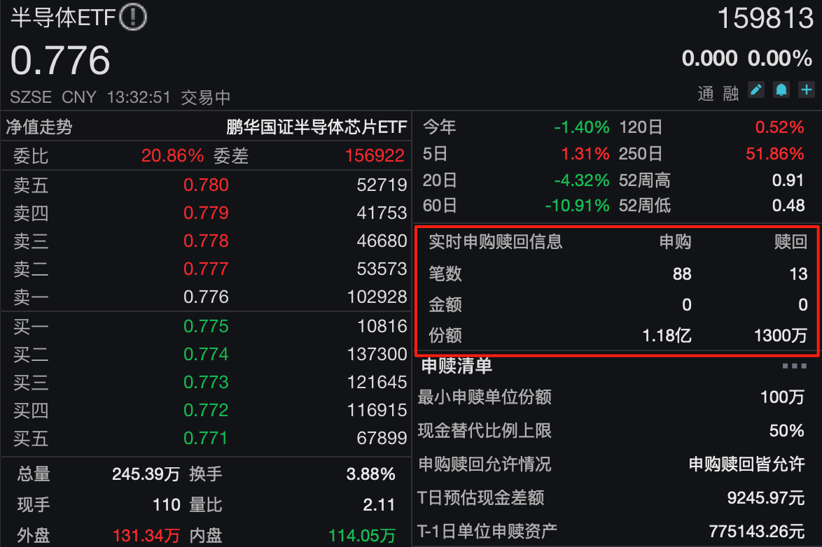 半导体ETF(159813)盘中净申购超1亿!海光+曙光下周复牌在即,关注含“海”量更高的ETF