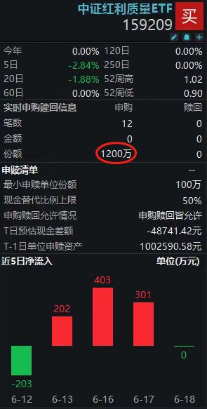 盘中获近1200万增仓!中证红利质量ETF(159209)环比放量近190%,“好公司+好价格”资产持续获青睐