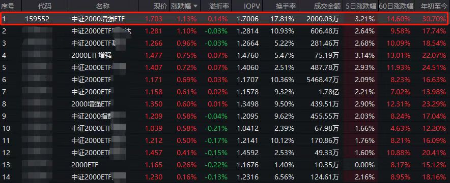 年内涨超30%遥遥领先!招商中证2000增强ETF(159552)大幅领跑同类
