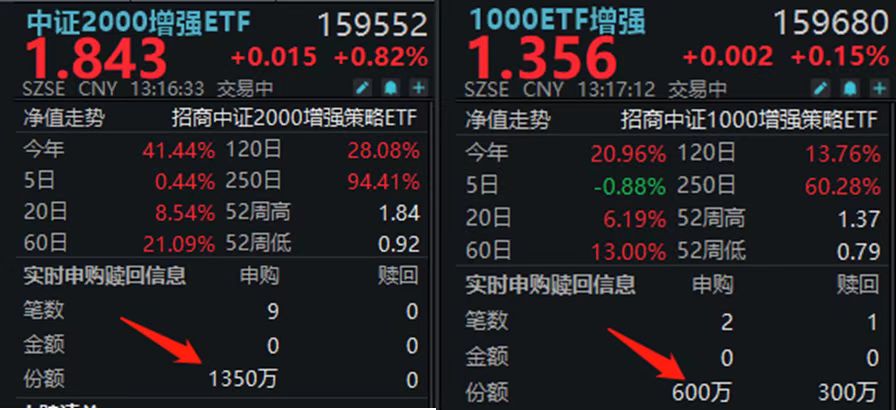 “最强中小盘”持续拉升,1000ETF增强(159680)、中证2000增强ETF(159552)盘中双双揽金