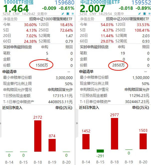 “小盘双子星”逆市揽金!1000ETF增强(159680)、中证2000增强ETF(159552)双双获得大单净流入