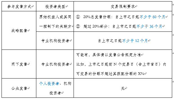 法规要求,参与战略配售取得的基金份额在规定的限售期限内不得进行转让、交易。换句话说,这里的“限售期”,一般只针对参与战略配售的投资者,而且不同投资者的限售期限长短也有不同。比如,