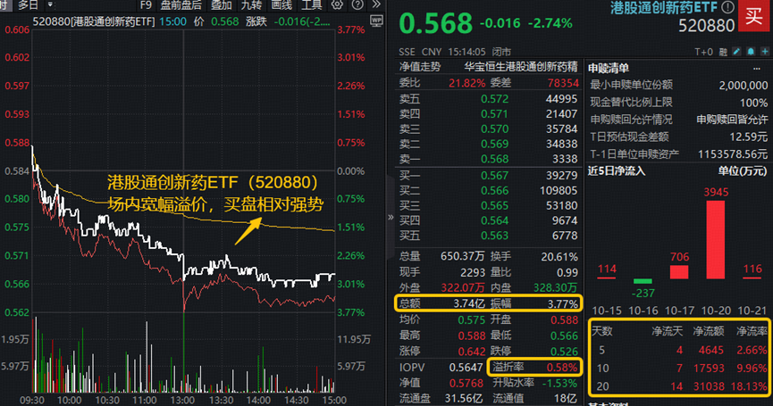 三、国产创新药BD“新王”诞生!股价天量巨振!港股通创新药ETF(520880)全天放量溢价,资金加速“抄底”?