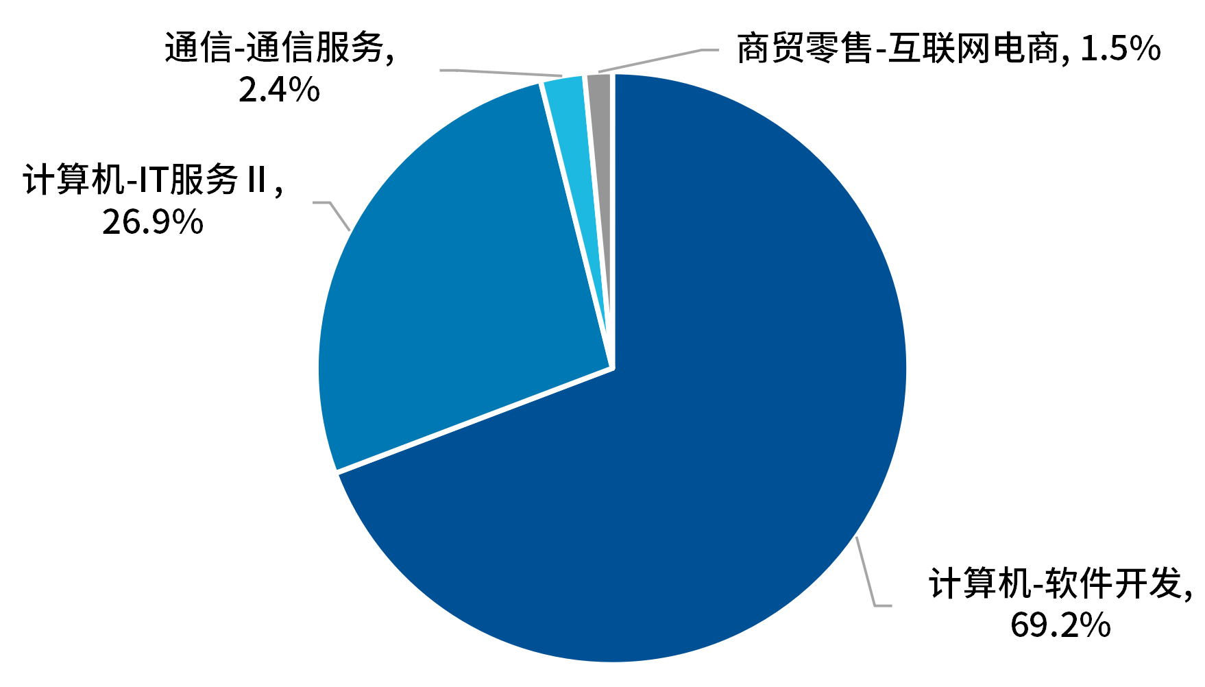 软件服务指数成份股大部分聚焦于下游的软件开发,96%的行业集中于软件应用相关的计算机行业。