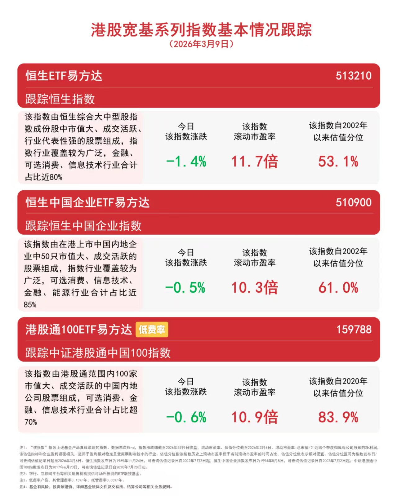 恒生系列指数调整生效,恒生中国企业ETF易方达(510900)、恒生ETF易方达(513210)等产品覆盖港股核心资产