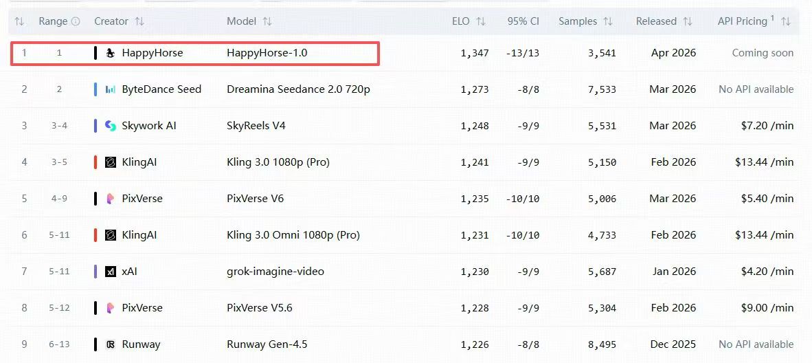 其二,Al视频评测平台Artificial Analysis突现神秘模型“Happy Horse“,强势超越Seedance2.0登顶榜首!业内普遍猜测极可能来自中国团队,有市场人士猜测该模型可能来自阿里通义实验室。