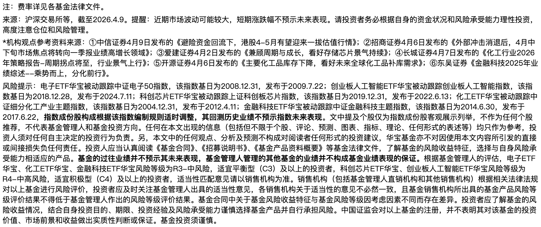 配置方面,招商证券表示,外部冲击消退后,4月中下旬市场焦点,或将转向一季报业绩高增长领域。有色、上游化工等资源板块,以及新能源、光通信、半导体产业链有望成为业绩增速最为亮眼的行业。*