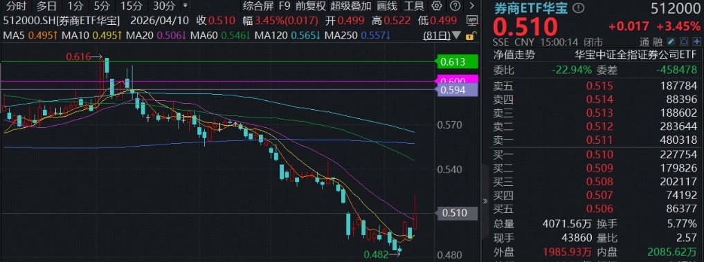 一、【终于启动,顶流券商ETF华宝(512000)冲高5.4%!历史首次,单季净利超百亿,中信证券领涨释放强信号】