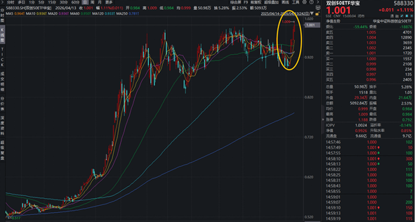 科技成长方向全天表现活跃,覆盖科创板+创业板高成长龙头的硬科技宽基——双创50ETF华宝(588330)场内涨幅最高上探1.82%,收盘劲涨1.11%,强势斩获日线5连阳。